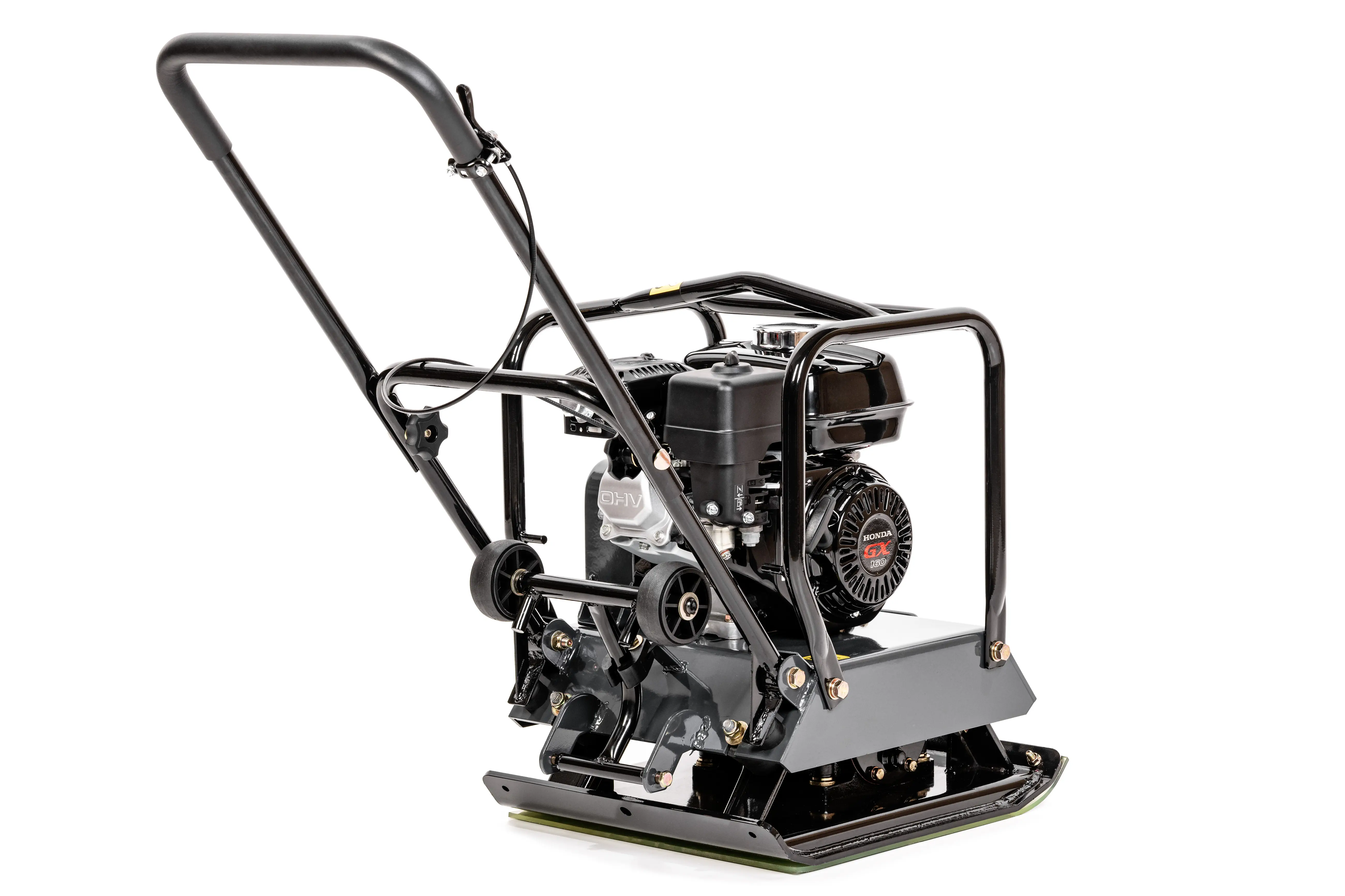 Model wyposażony jest w niezawodny silnik Honda GX160 o mocy 3,6 kW i pojemności 163 cm³, który zapewnia stabilną pracę oraz wysoką efektywność zagęszczania. Siła zagęszczania na poziomie 15 kN oraz częstotliwość drgań 4200/min pozwalają osiągnąć głębokość zagęszczania do 30 cm, co czyni urządzenie odpowiednim do przygotowania podłoża pod nawierzchnie drogowe, chodniki czy fundamenty.