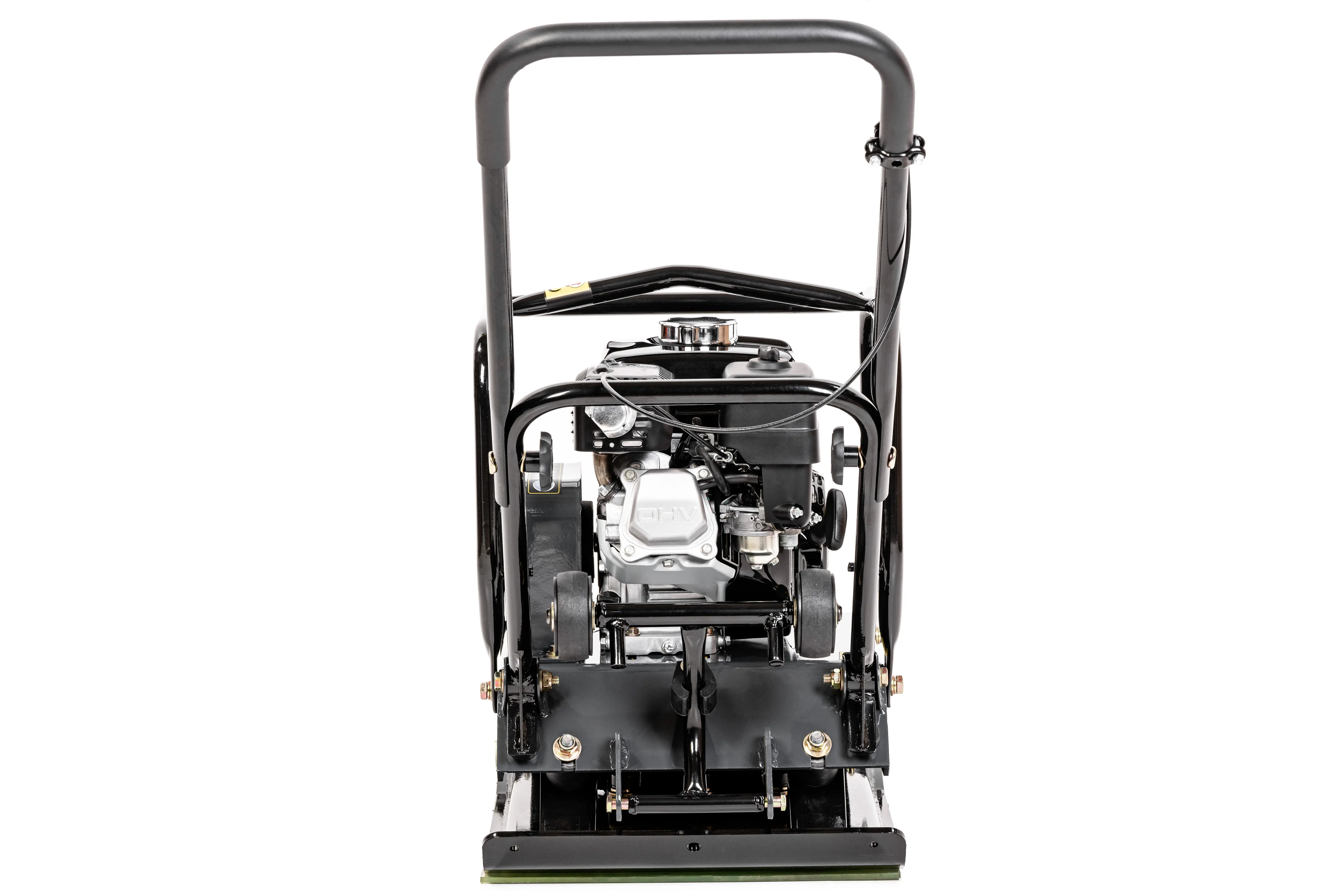 Urządzenie zostało zaprojektowane z myślą o wygodzie użytkownika – składany uchwyt ułatwia transport i przechowywanie, a wbudowane koła transportowe pozwalają na szybkie przemieszczanie maszyny po placu budowy. Dodatkowo w zestawie znajduje się mata, która umożliwia bezpieczne zagęszczanie kostki brukowej bez ryzyka jej uszkodzenia.